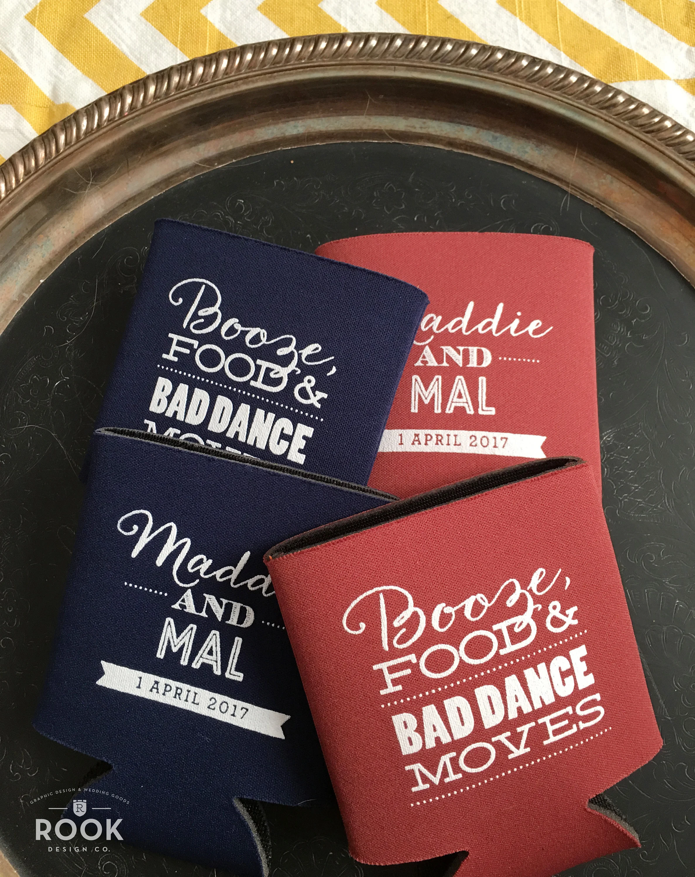 Food, Booze and Bad Dance Moves wedding can coolers
